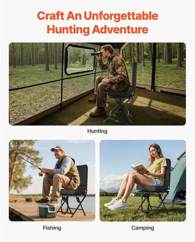 Hunting Chair 360° Swivel Silent Foldable Blind Chair with Steel Frame Backrest