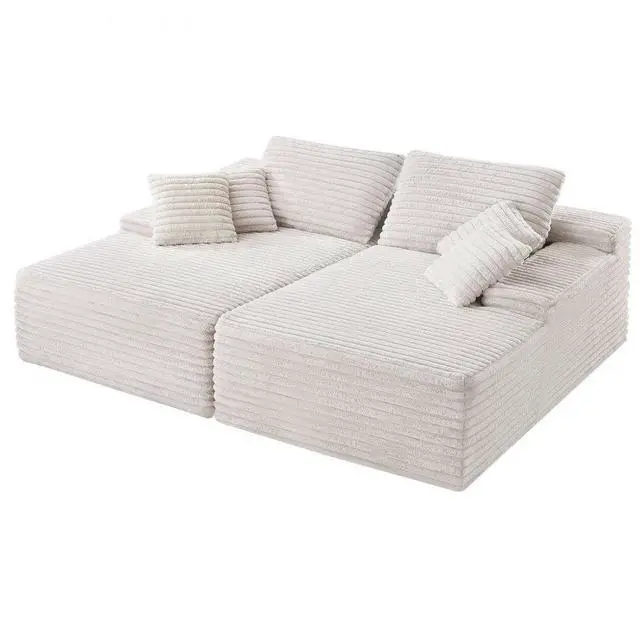 Oversized Double Chaise Lounge 82.7 in Corduroy Sectional Loveseat Sofa Beige