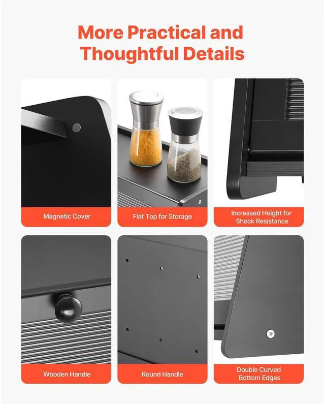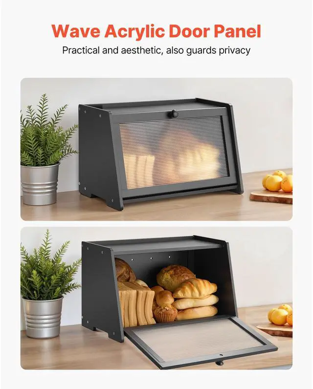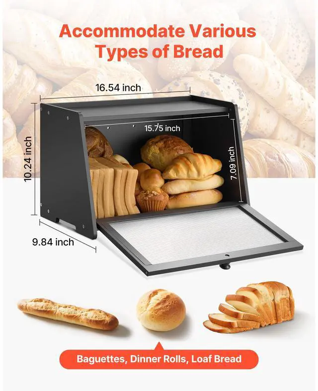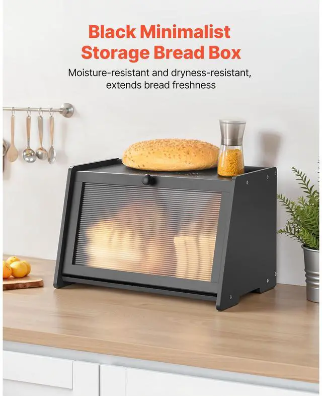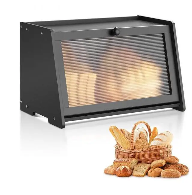 Bread Box for Kitchen Counter Large Capacity Bamboo Storage Container Black