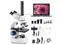 Total Magnifications: 40X, 100X, 250X, 400X, 1000X, 2000X, 2500X, 4000X, 5000X,Light Source: LED Lamp,Product Dimensions: 5.5 x 7.5 x 13.3 in / 140 x 190 x 338 mm,Power Adapter: US Standard Plug, Output: DC 5V/2A, Cable Length: 1000 mm,Electronic Eyepiece: 1.5 Megapixels,Main Materials: Base: Aluminum Alloy; Body: Aluminum Alloy + ABS Plastic,Specifications: Trinocular, 405000X Magnification,Condenser: Adjustable Iris Diaphragm,Magnification Range: 2 Sets of Eyepieces: 2X, 10X, 25X; Objectives: 4X, 10X, 40X, 100X,Focusing: Precision Focusing, Coarse (18mm), Ultra-Fine (1.2mm) Adjustment,Viewing Head: 3 Viewing Tubes, 360° Rotatable,Power Supply Mode: Adapter Powered,Item Model Number: H-33A,Stage: 95 x 95 mm, Mechanical Stage with Travel Range 70 x 40 mm,Power Parameters: Input: AC 110240V, 50/60Hz,Net Weight: 4.9 lbs / 2.22 kg ±5% (including all accessories)