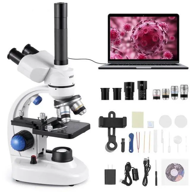 VEVOR Professional Trinocular Compound Microscope Kit 40-5000X Magnification