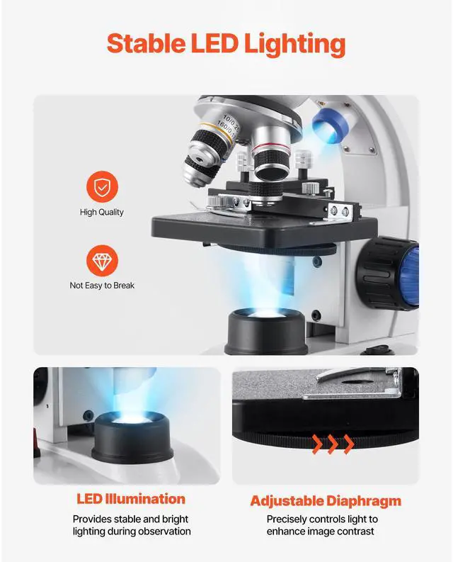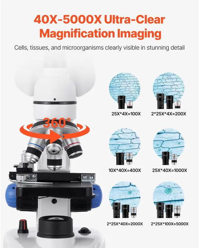VEVOR Professional Trinocular Compound Microscope Kit 40-5000X Magnification