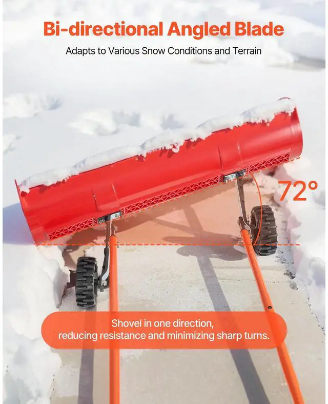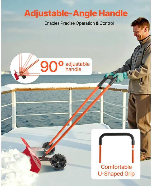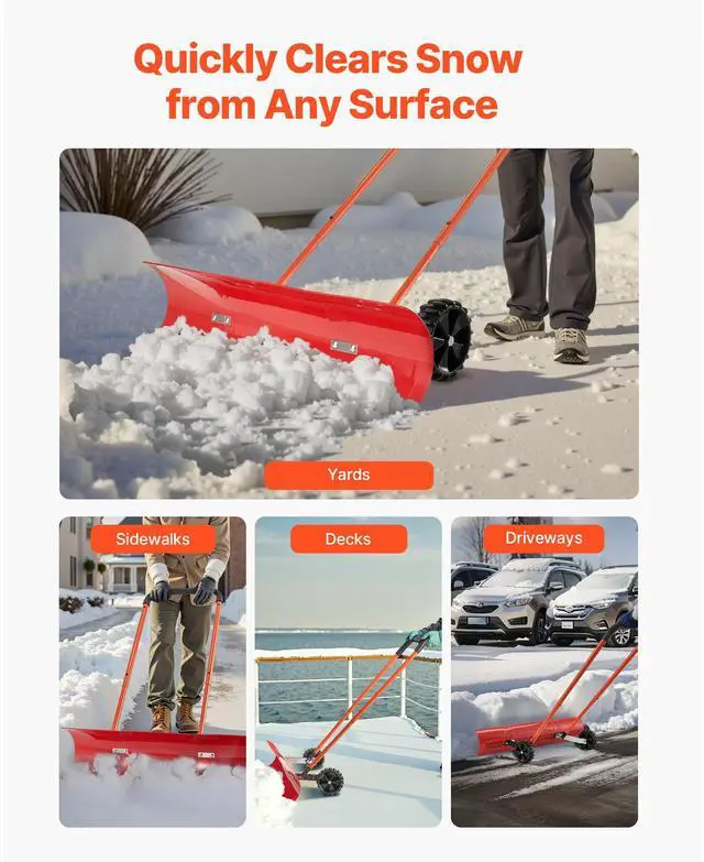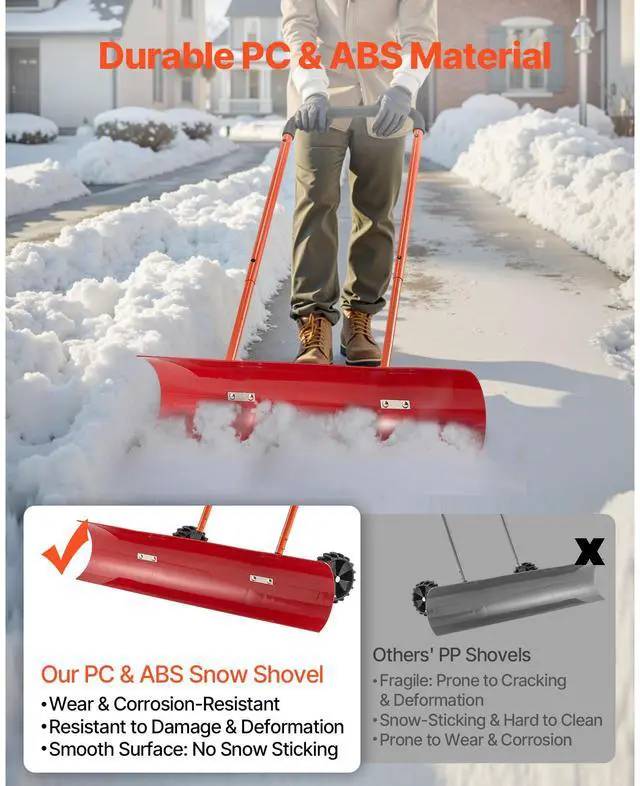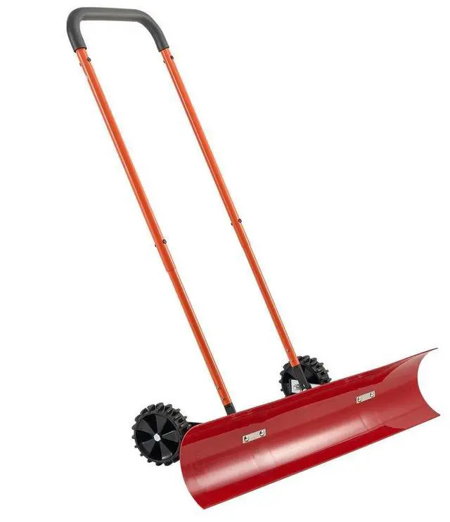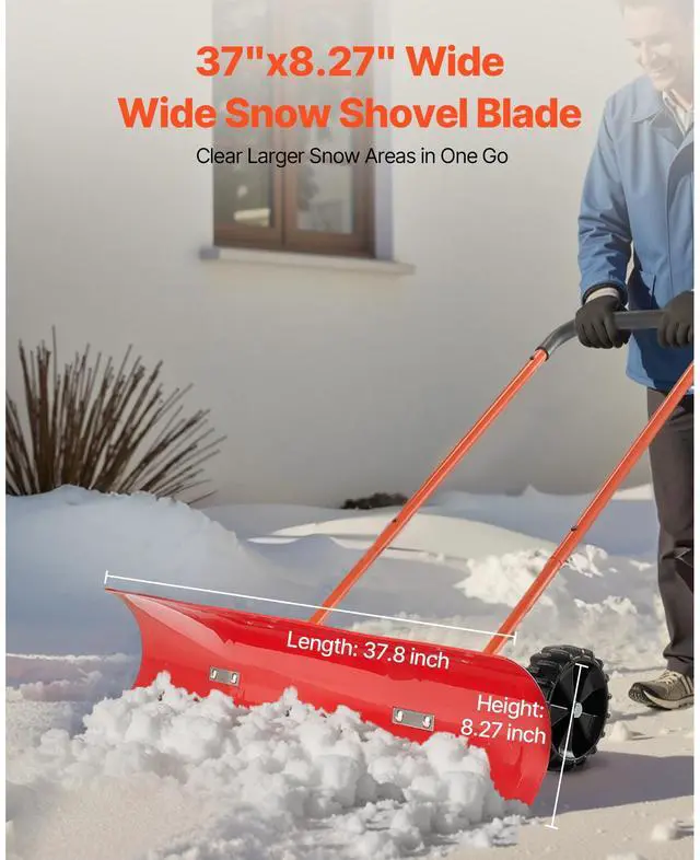 Snow Pusher Shovel with Wheels 37.8 in Plastic Winter Snow Plow for Driveway