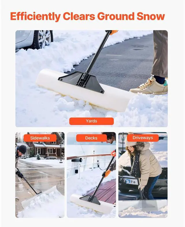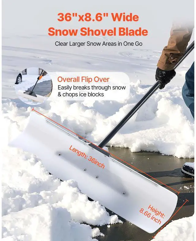 Plastic Snow Pusher Shovel 36in Heavy Duty Snow Plow for Driveway Ergonomic Grip