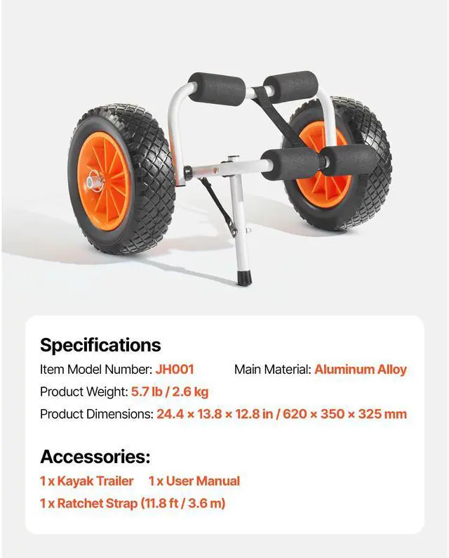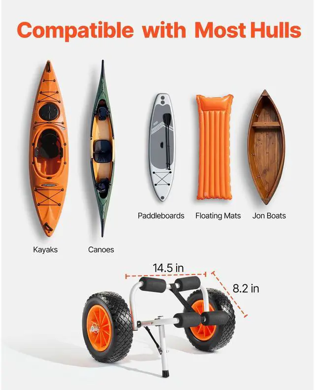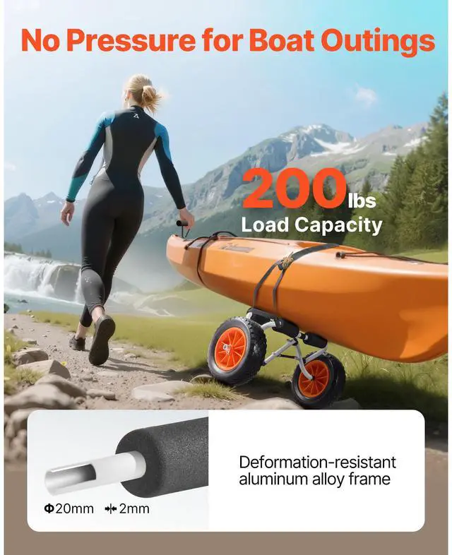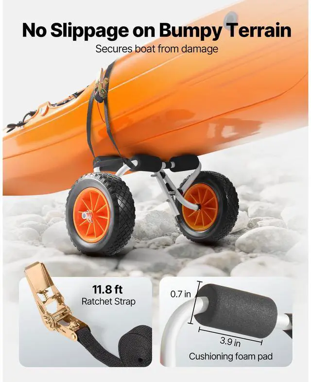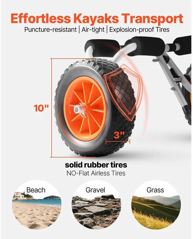Kayak Cart 200 lbs Foldable Canoe Carrierwith 10-inch Solid Rubber Tires