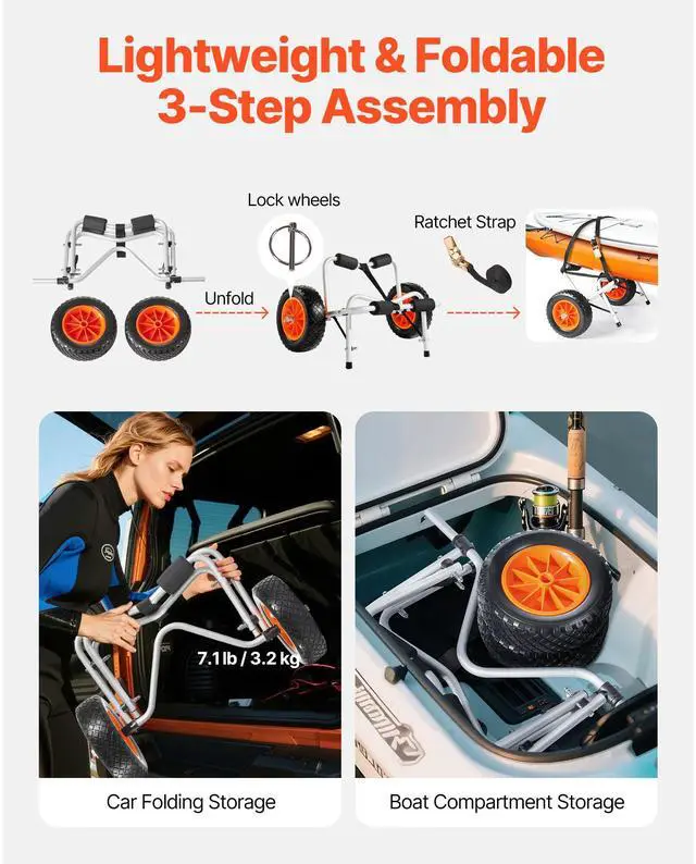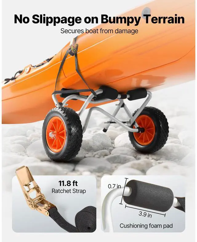 Kayak Cart 250 lbs Foldable Canoe Carrier with 10-inch Solid Rubber Tires
