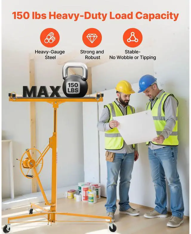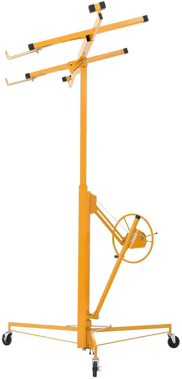 11ft Drywall Lift 150 lbs Sheetrock Hoist Adjustable Arm Lockable Wheels Yellow