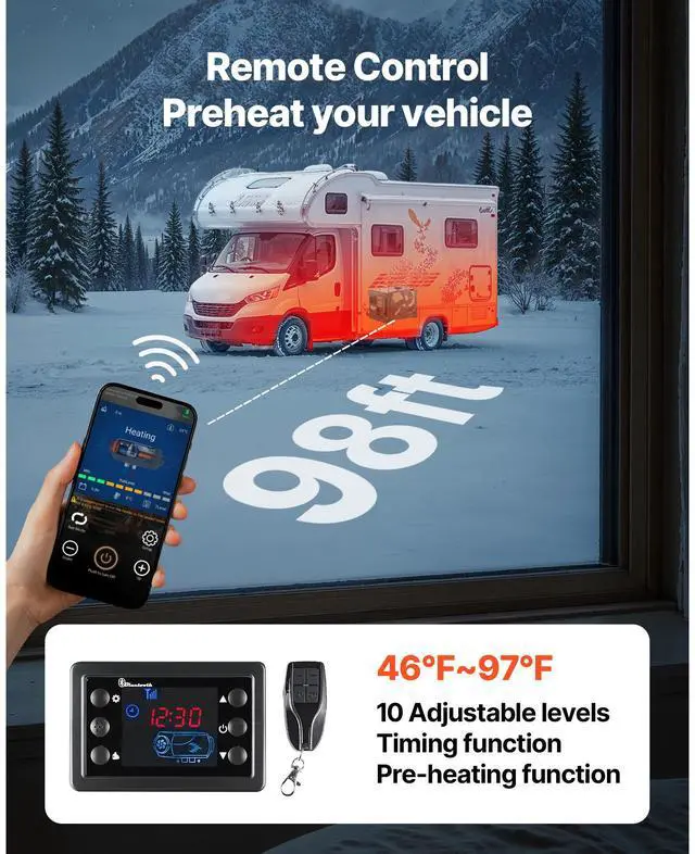 VEVOR Diesel Heater Portable Diesel Air Heater 8KW DC 12V/24V Bluetooth 1.9 Gal