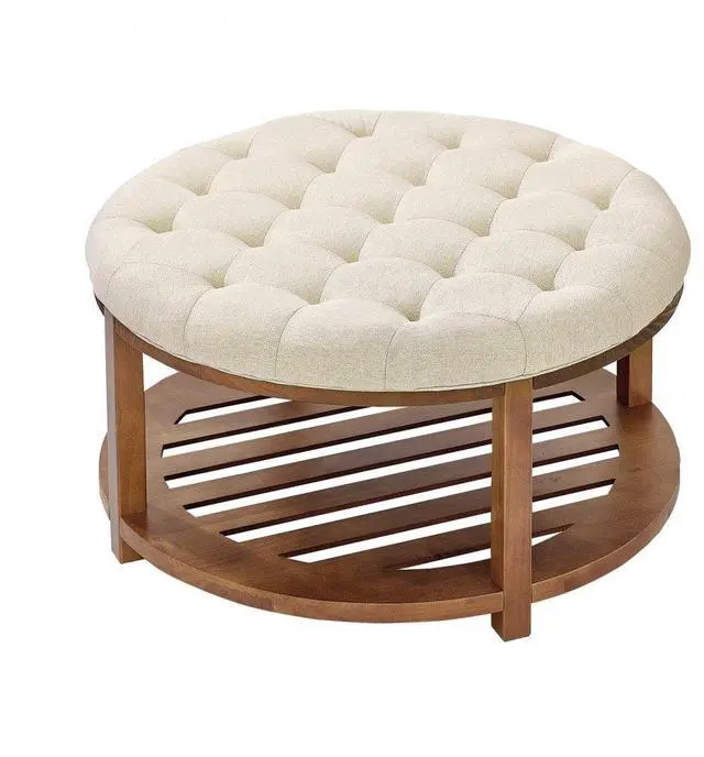 Large Round Ottoman Coffee Table 31.9 Inch Upholstered Tufted Linen Ottoman