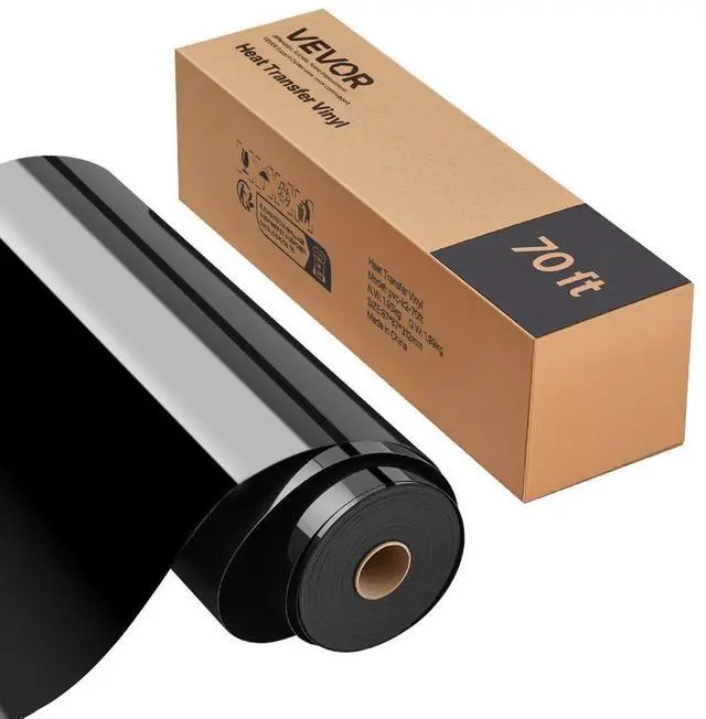 VEVOR Heat Transfer Vinyl HTV Iron on Vinyl Roll 12 in x 70 ft Glossy Black