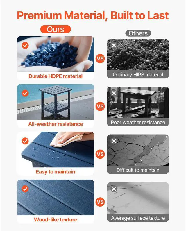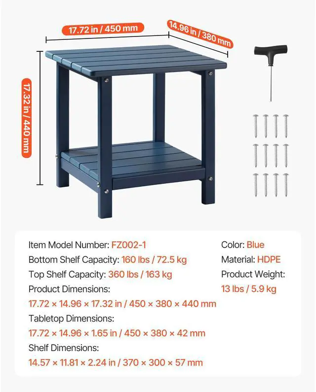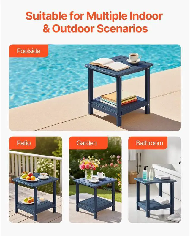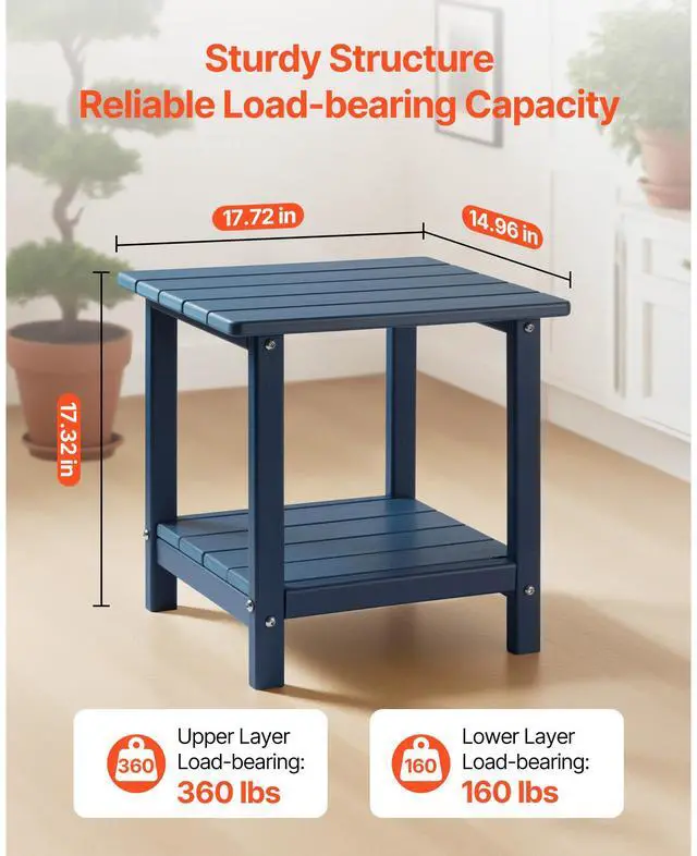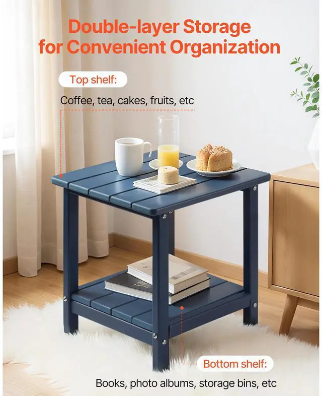 VEVOR Outdoor Side Table 2-Tier HDPE Outside End Table for Indoor Backyard Blue
