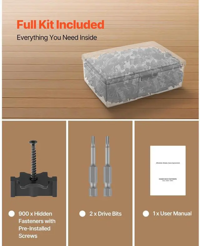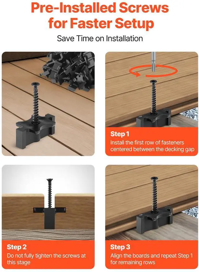 900PCS Hidden Deck Fasteners for Composite Decking Universal T Clips Black
