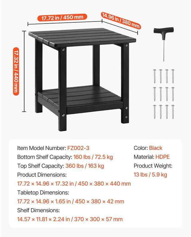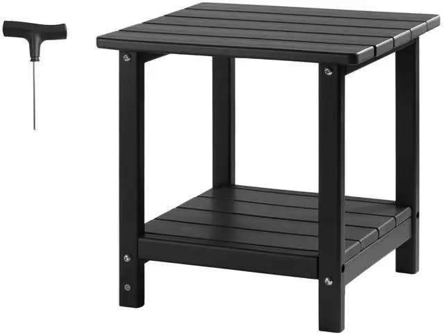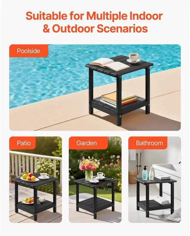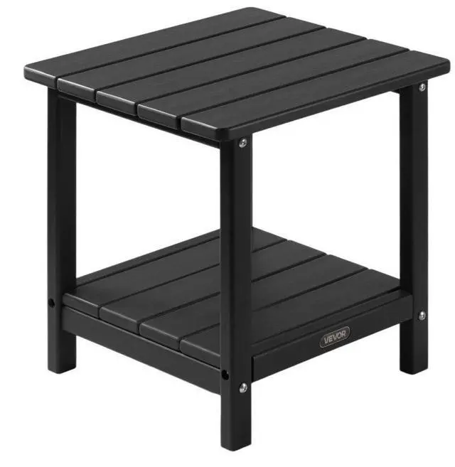 VEVOR Outdoor Side Table 2-Tier HDPE Outside End Table for Indoor Backyard Black