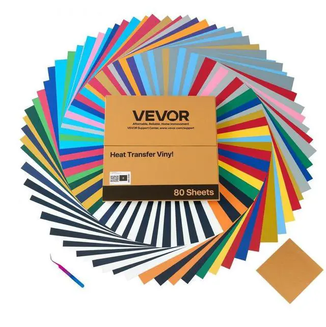 VEVOR Heat Transfer Vinyl HTV Iron on Vinyl Bundle 80 Pack 12 x 12 in Multicolor