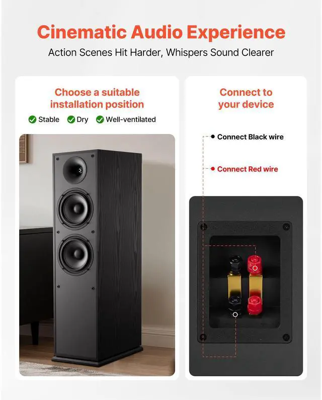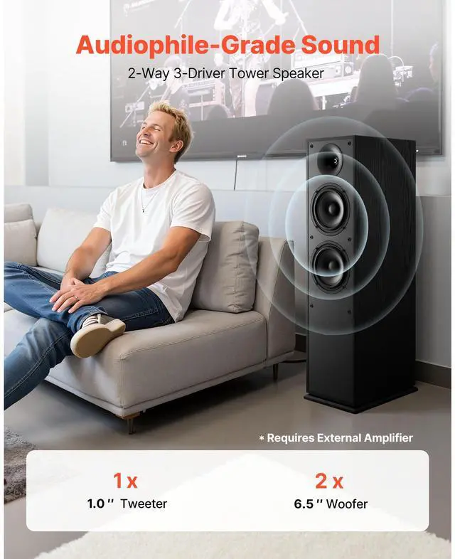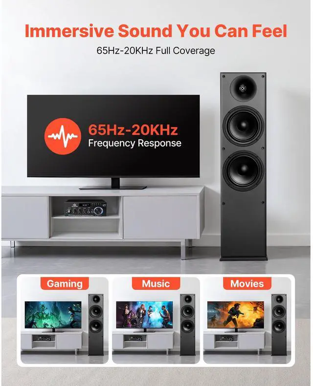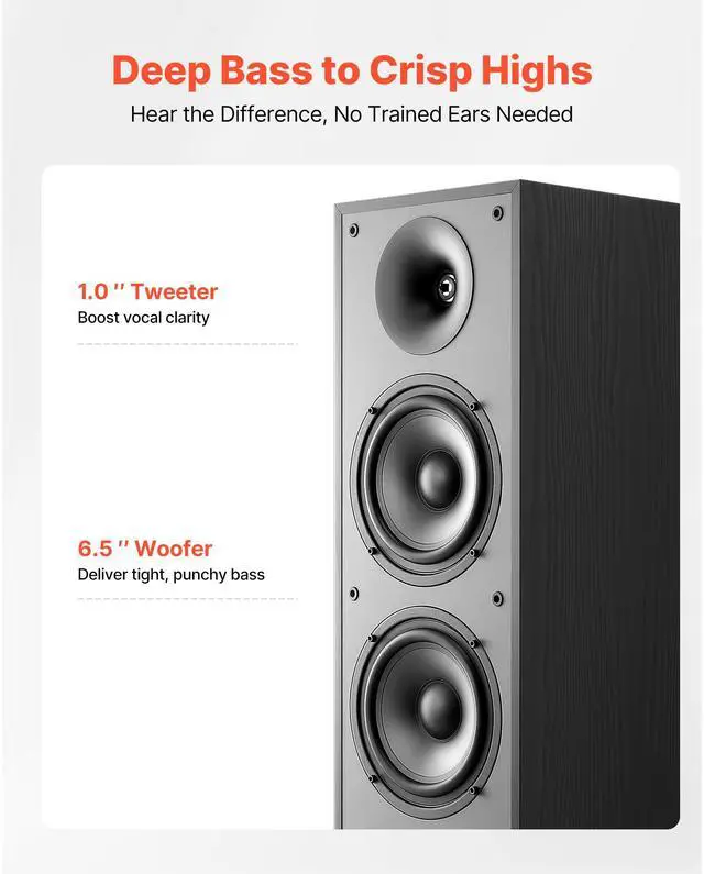 VEVOR Floorstanding Speakers 2-Way Floor-Standing Tower Speakers 400W Peak Pair