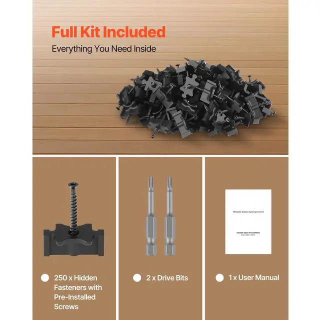 250PCS Hidden Deck Fasteners for Composite Decking Universal T Clips Black
