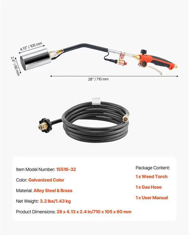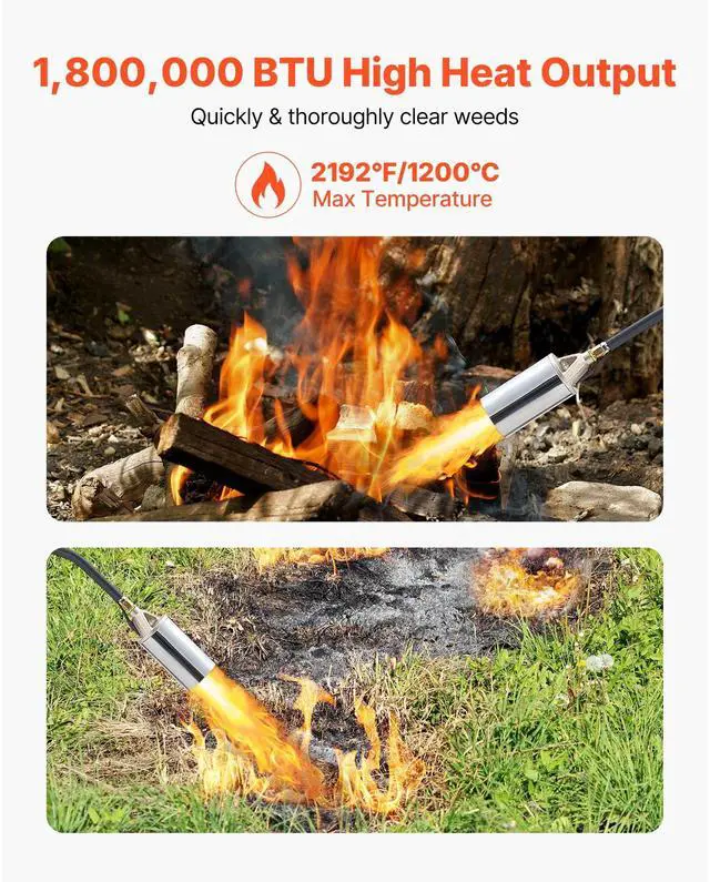 Propane Weed Torch Burner Ice Snow Melter 1800000 BTU 10 ft Hose Portable