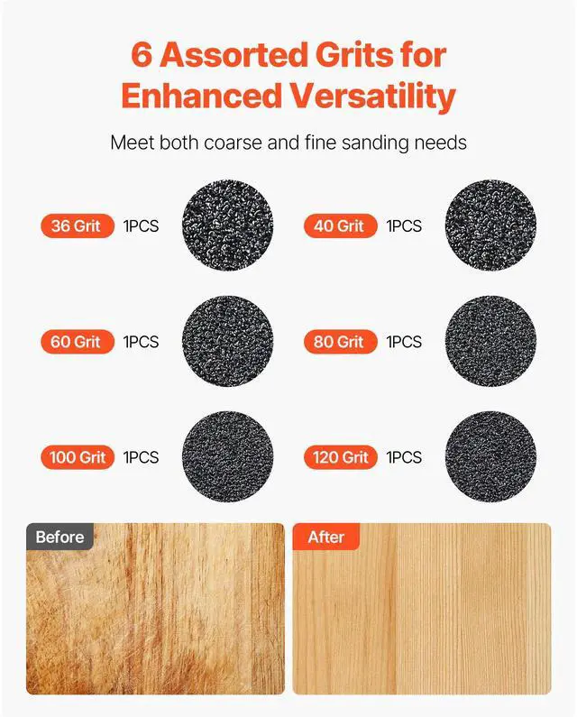 Grit: 36/40/60/80/100/120 Grits, 1PC of Each Grit