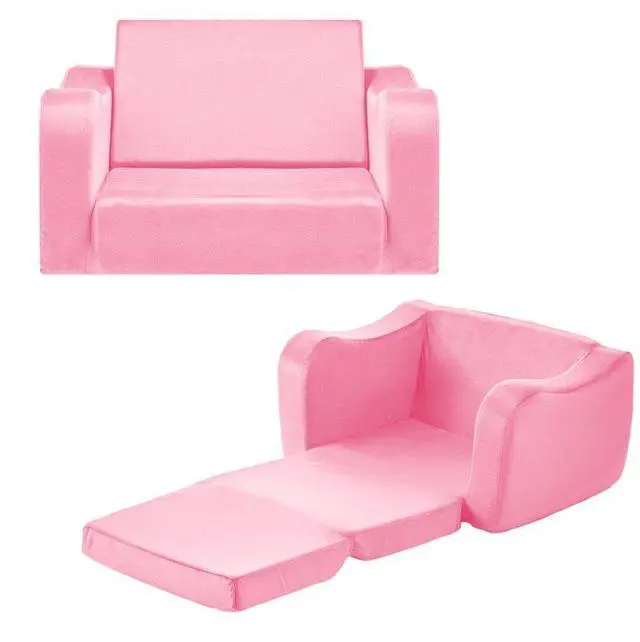VEVOR 2-in-1 Kids Sofa Foldable Soft Couch with Armrests Chair to Lounger Gray M Pink