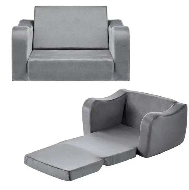 VEVOR 2-in-1 Kids Sofa Foldable Soft Couch with Armrests Chair to Lounger M Gray