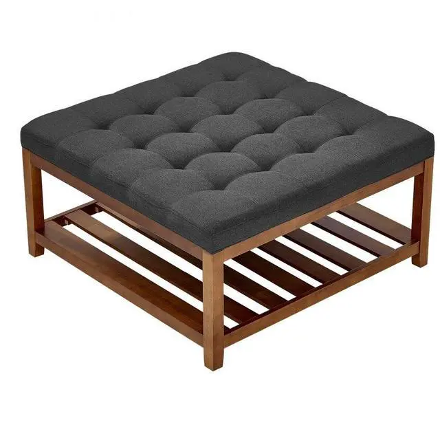 Large Square Ottoman Coffee Table 400 LBS Upholstered Tufted Linen Ottoman