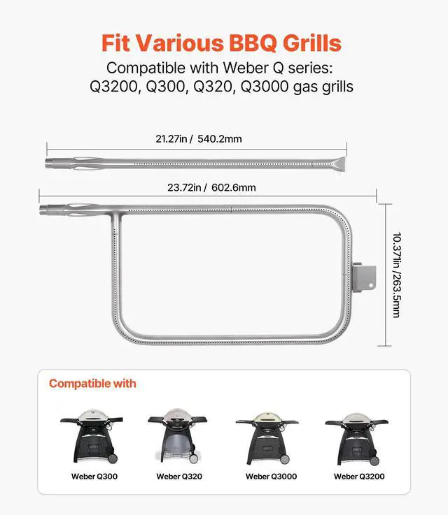 VEVOR Stainless Steel Tube Burner for Weber Q3200 Q300 Q320 Q3000 Gas Grills