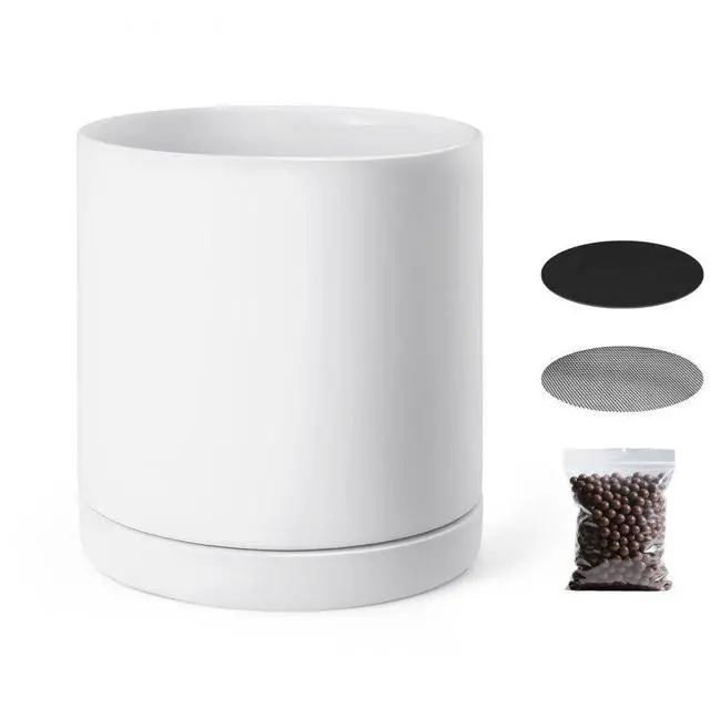 • VEVOR 12 in Cylinder Ceramic Planter Pot with Saucer Drainage Holes Home Decor