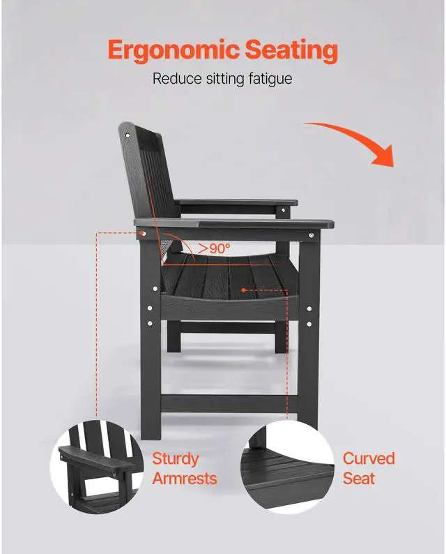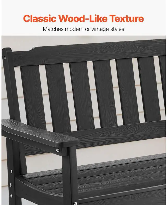 VEVOR Outdoor Bench Patio Bench 50.5 inch Weatherproof Plastic 800 lbs Black
