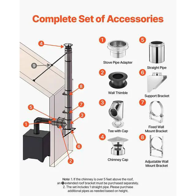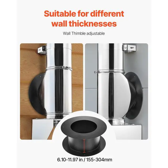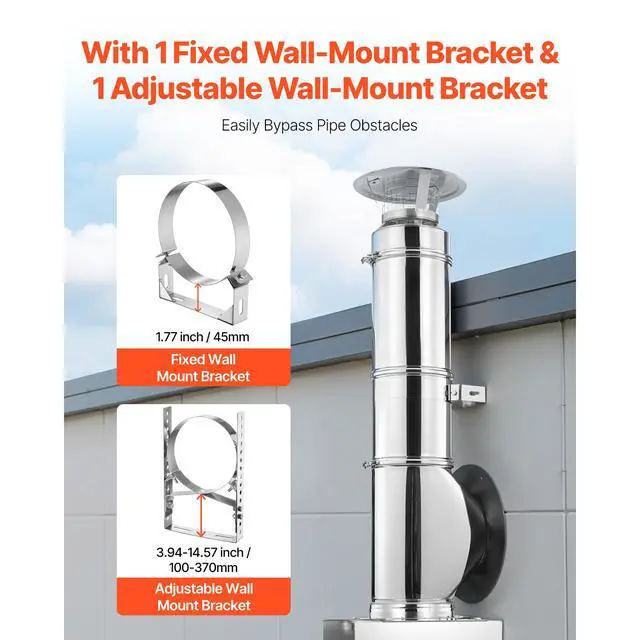 External Chimney Kit 6 Inch with Rain Cap Adjustable Bracket Roof Mount