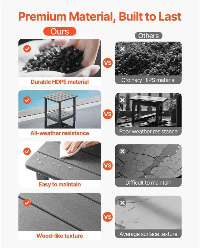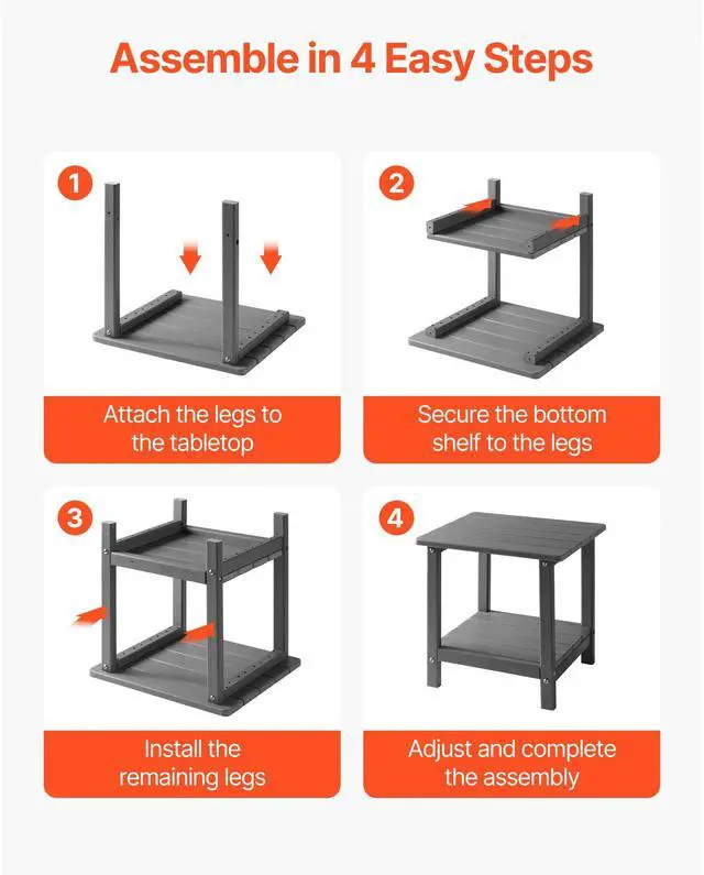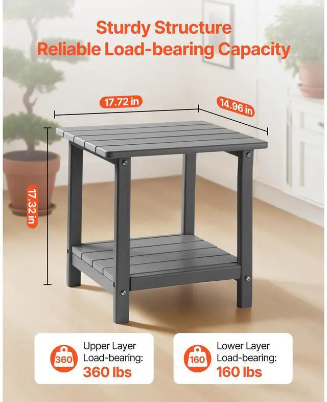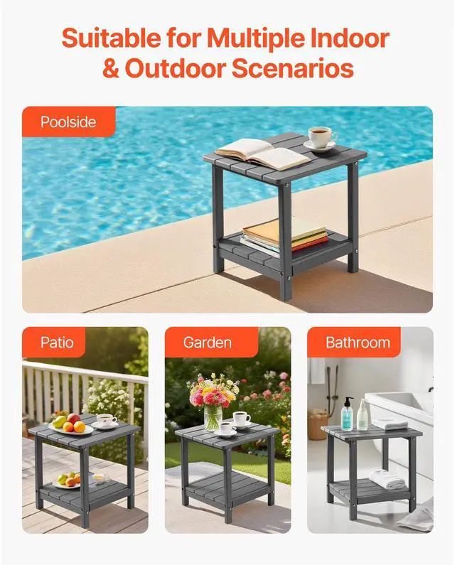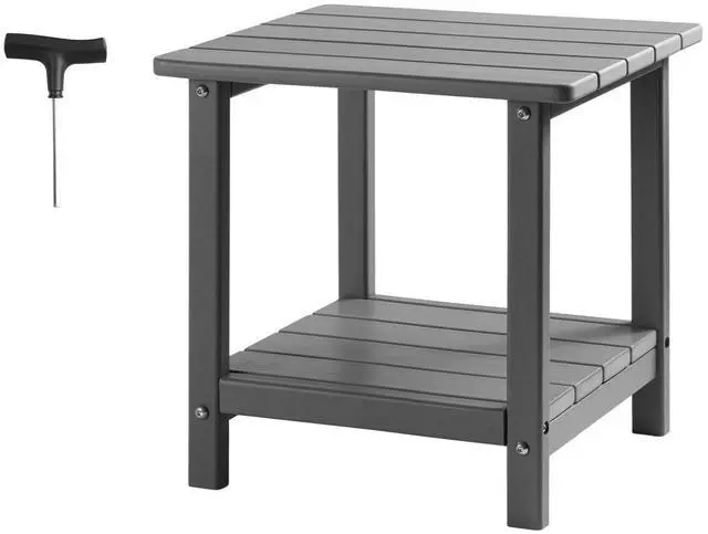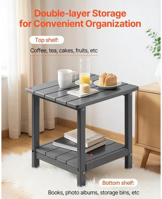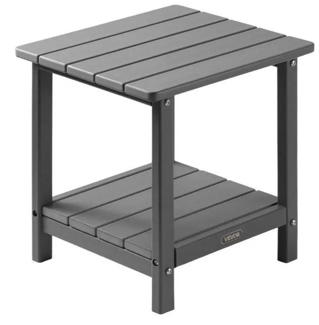 VEVOR Outdoor Side Table 2-Tier HDPE Outside End Table for Indoor Backyard Grey