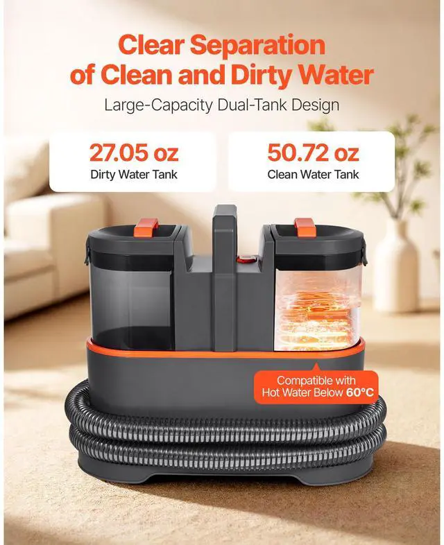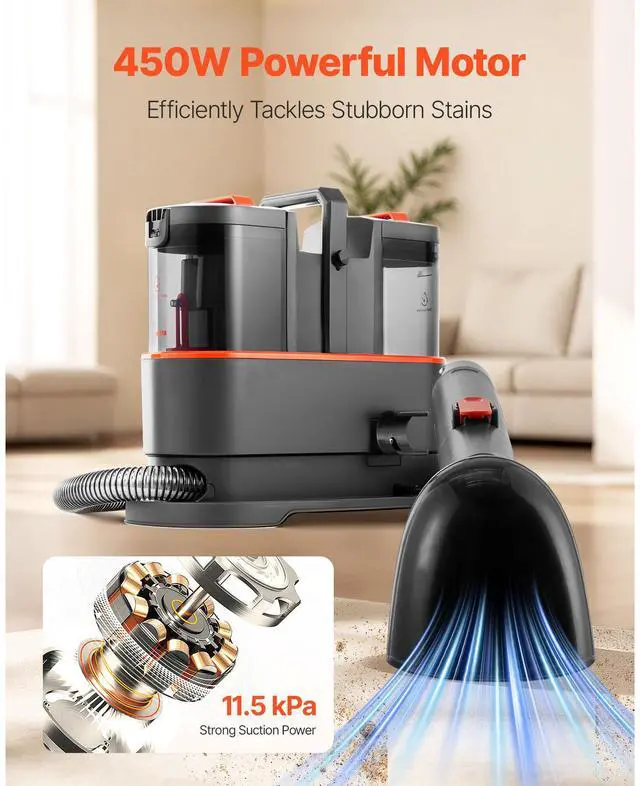 Portable Carpet Cleaner Machine Dual-Water Tank 11.5Kpa Upholstery Cleaner
