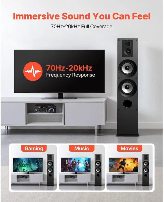 • VEVOR Floorstanding Speakers 3-Way Floor-Standing Tower Speakers 145W Peak Pair