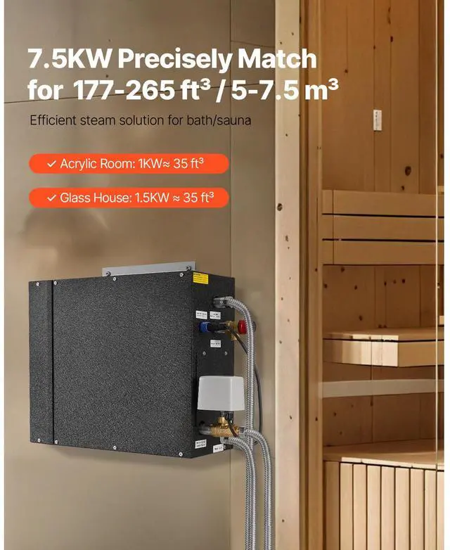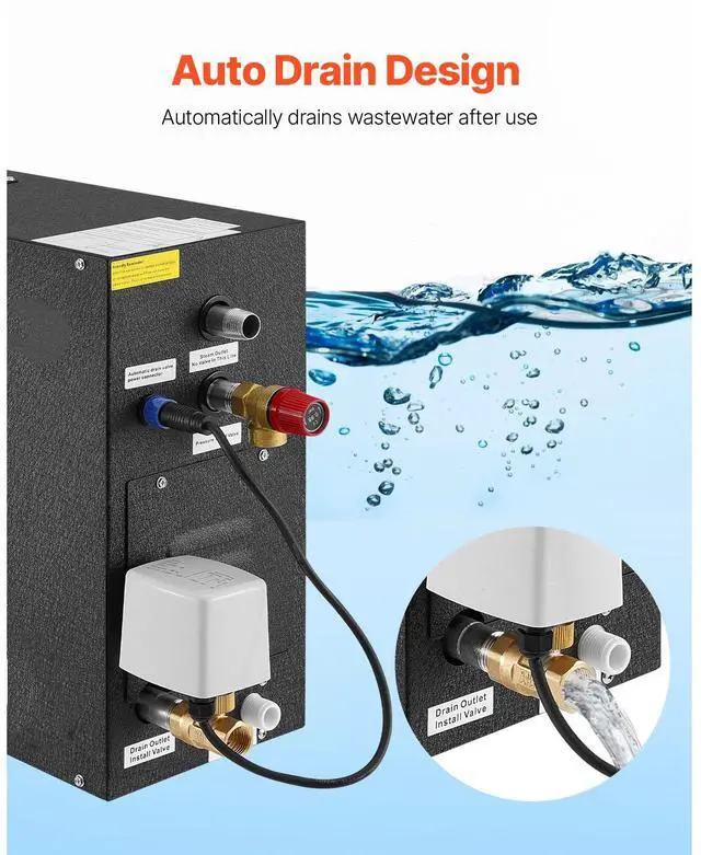 VEVOR 7.5kW Steam Generator with Controller for Home Sauna Spa Auto Drain Kit