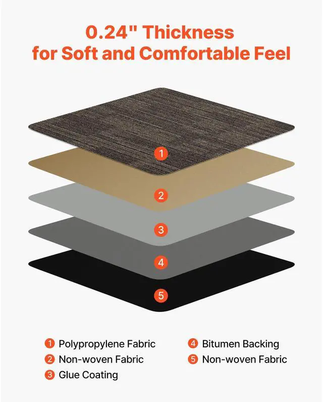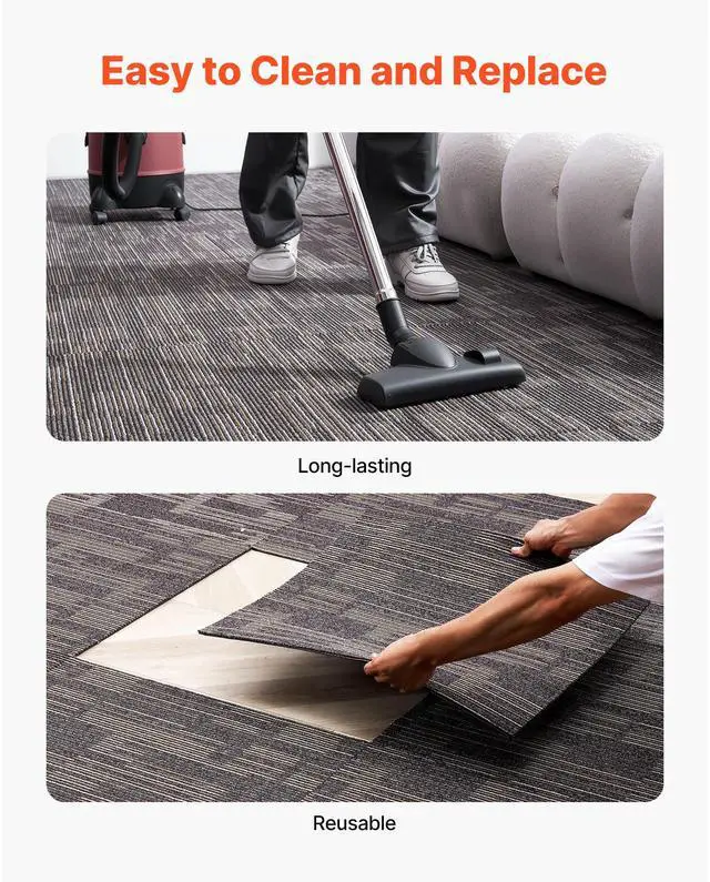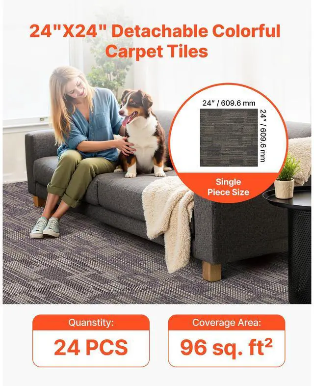 Carpet Tiles Reusable 24x24 inch 24 PCS Modular Rug Soft Padded Gray Brown