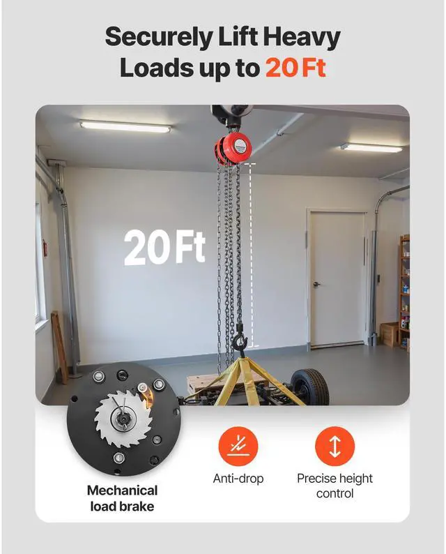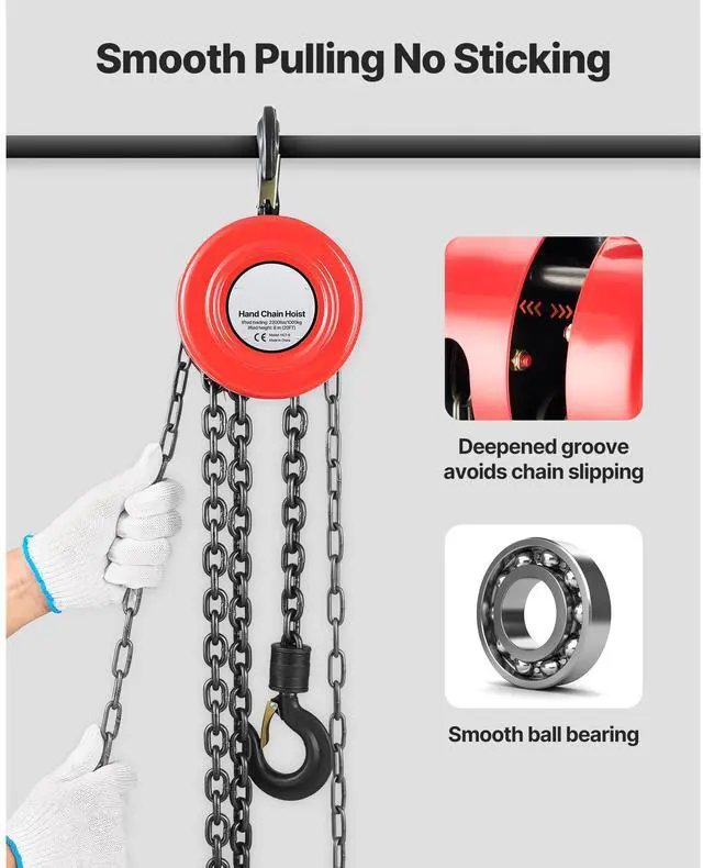 VEVOR Hand Chain Hoist 2200 lbs Capacity 20 ft Manual Chain Block with G70 Chain
