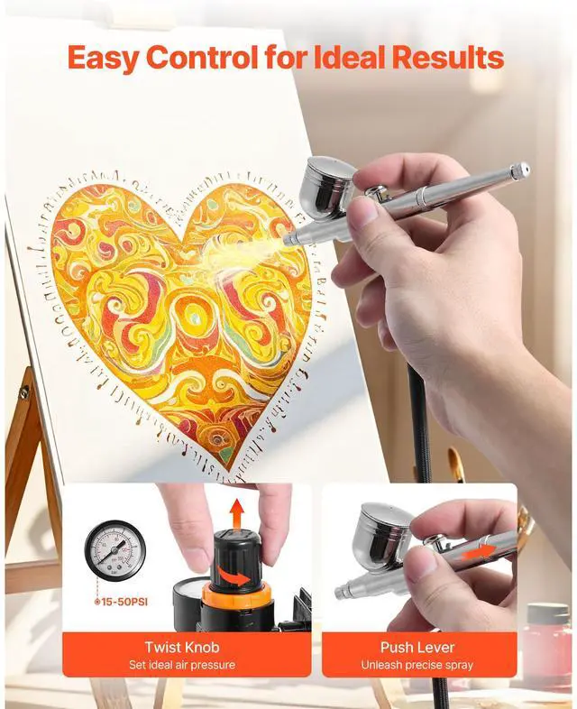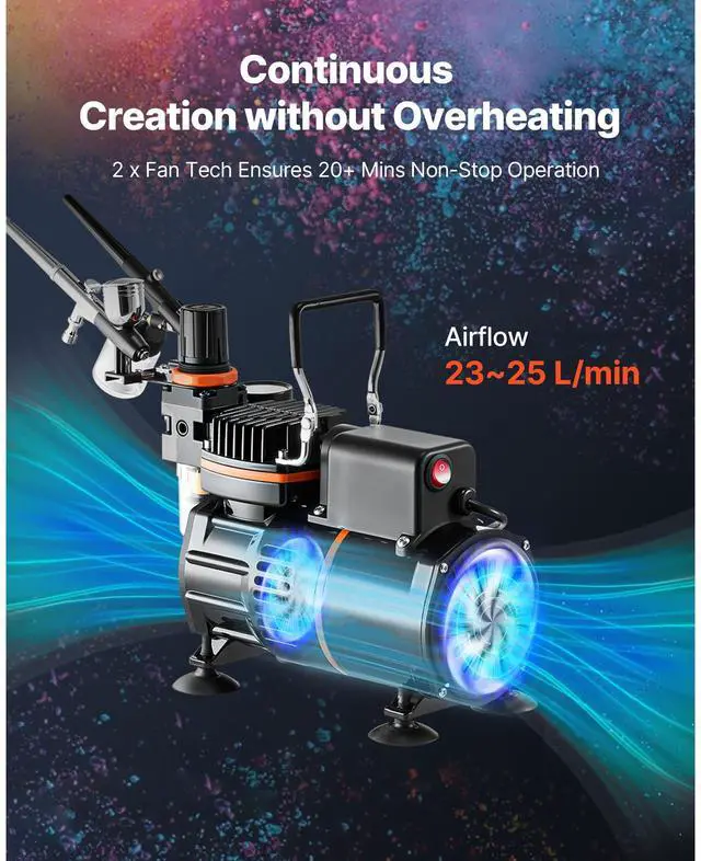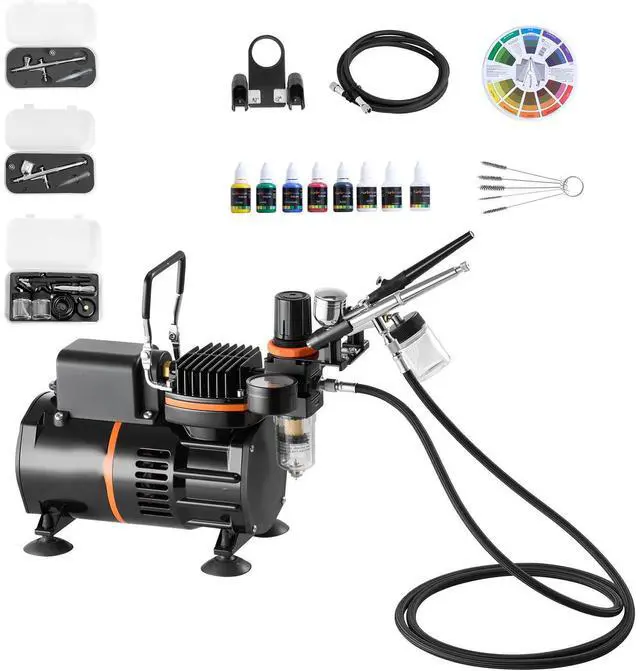 VEVOR Airbrush Kit Air Brush Kit 1/6 HP Air Compressor 3 Airbrushes 3 Tips 2 Fan