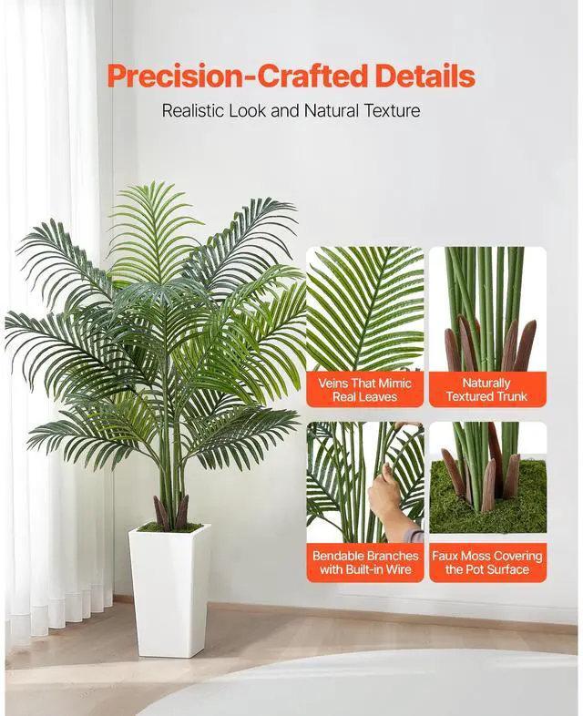Type: Areca Palm,Tree Height: 5 ft / 1524 mm,Outer Pot Dimensions: 15.75 x 8.66 x 8.66 inch / 400 x 220 x 220 mm,Item Model Number: FH-SWK150,Inner Pot Dimensions: 6.3 x 5.12 inch / 160 x 130 mm,Quantity: 1,Item Dimensions: 35.43 x 31.5 x 60.63 inch / 900 x 800 x 1540 mm,Trunks: 12,Net Weight: 8.47 lbs / 3.84 kg,Main Material: PE