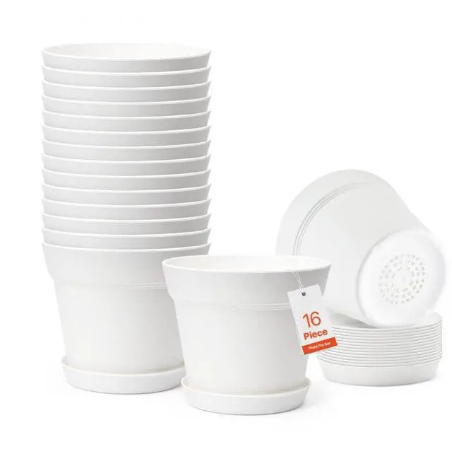 VEVOR 16 Packs 6 in Durable Plastic Planter Pots with Drainage Holes & Saucers