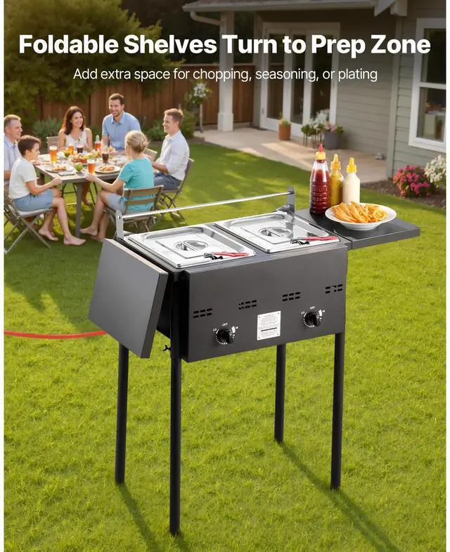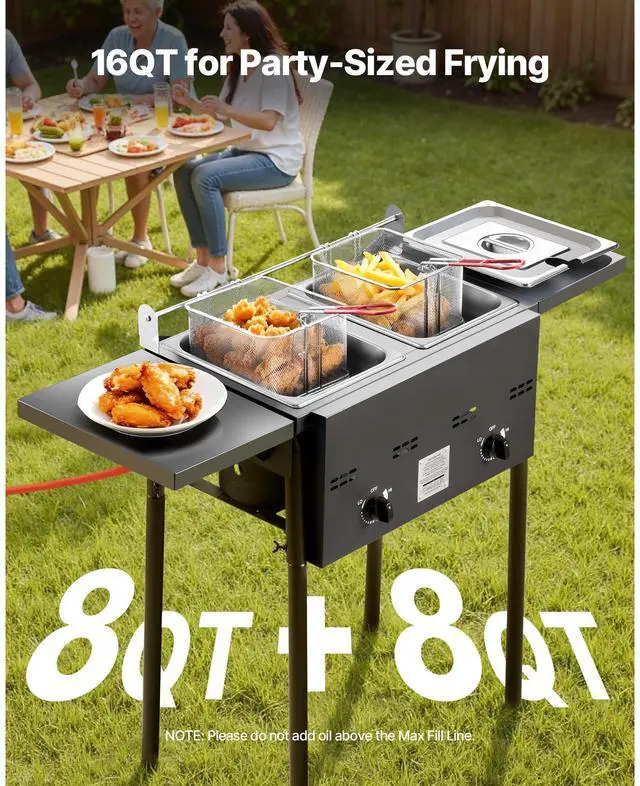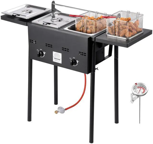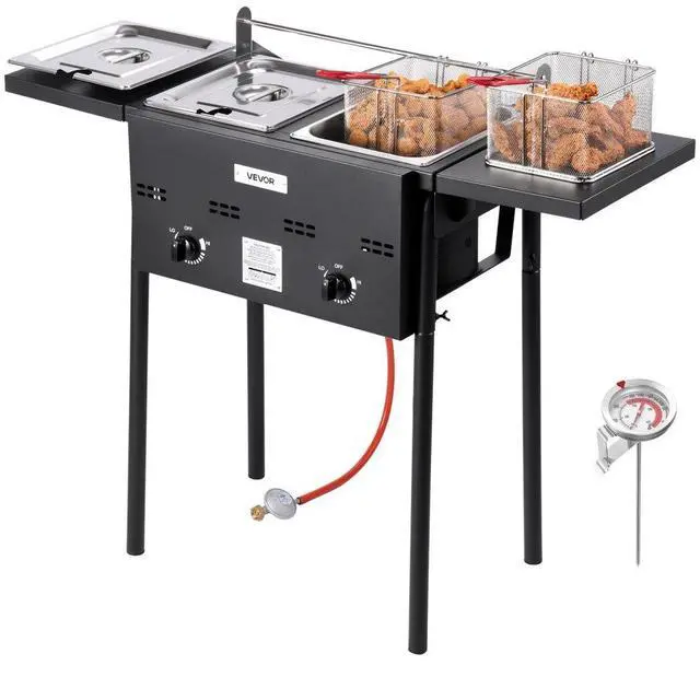 8QTx2 Outdoor Propane Deep Fryer Commercial Free Standing Cooker Two Tank
