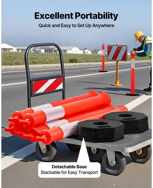 VEVOR 3 Packs Traffic Delineator Posts 48 in Traffic Safety Cones Weighted Base