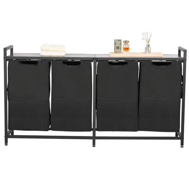 VEVOR 4 Section Laundry Sorter with Pull-Out Bags Metal Frame & Wooden Tabletop