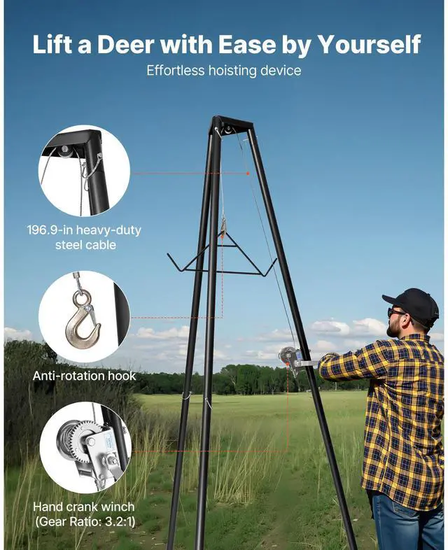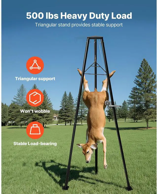 VEVOR Tripod Deer Hoist 500 lbs Game Hoist Winch Lift with Gambrel & Winch