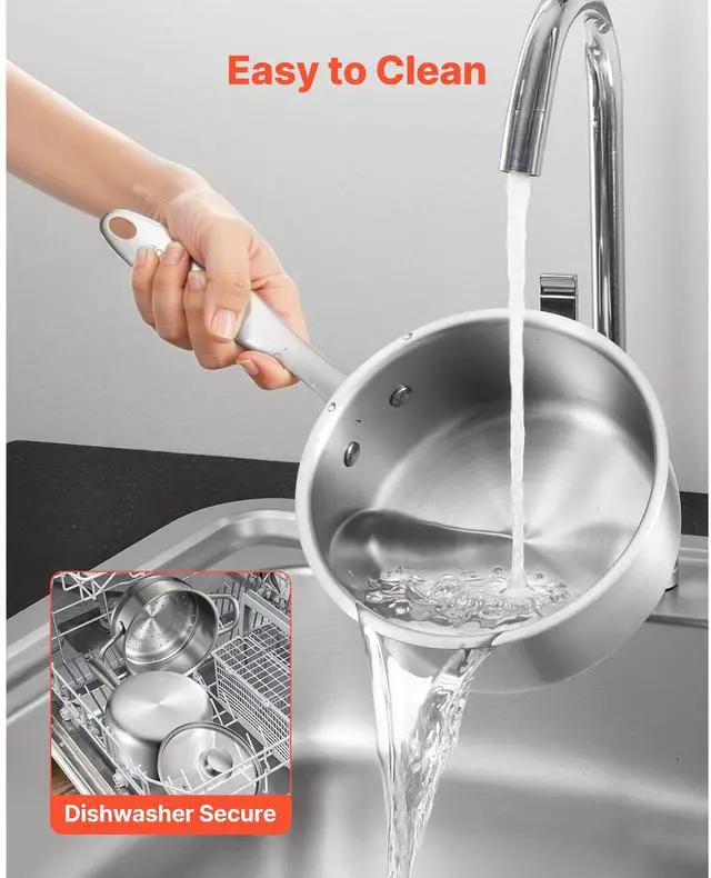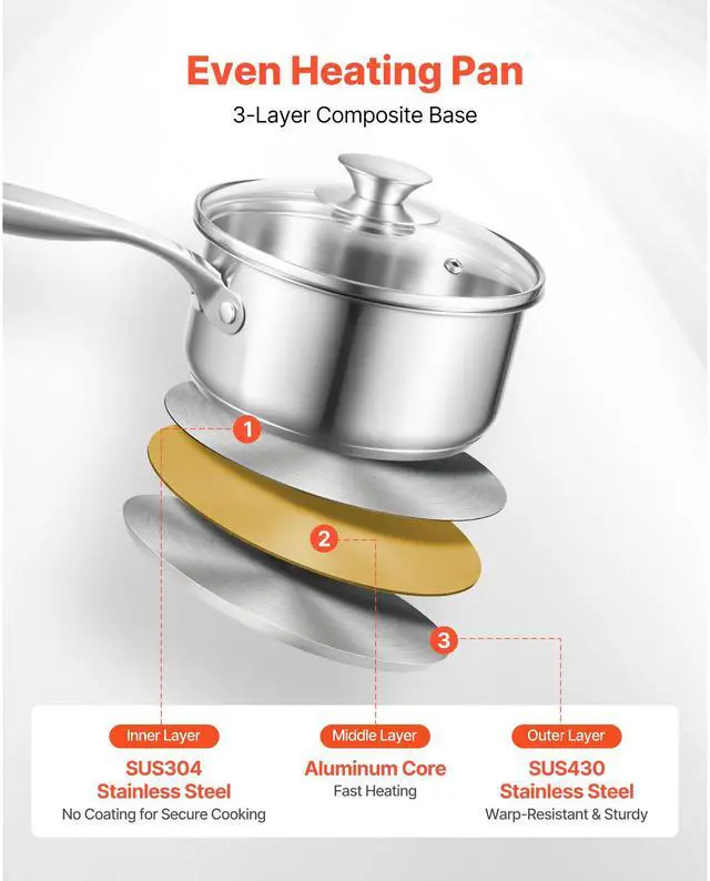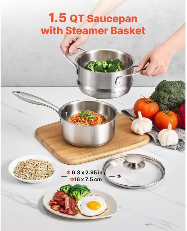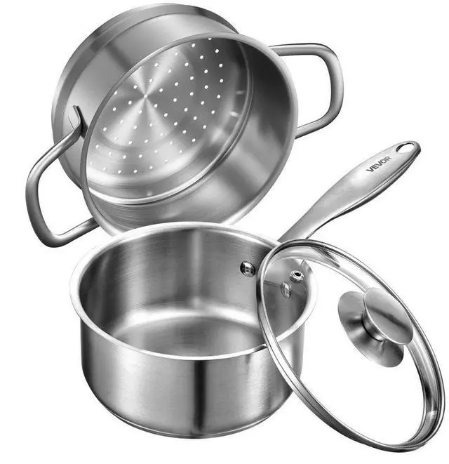 VEVOR 1.5 QT Saucepan with Steamer Stainless Steel Saucepan with Glass Lid