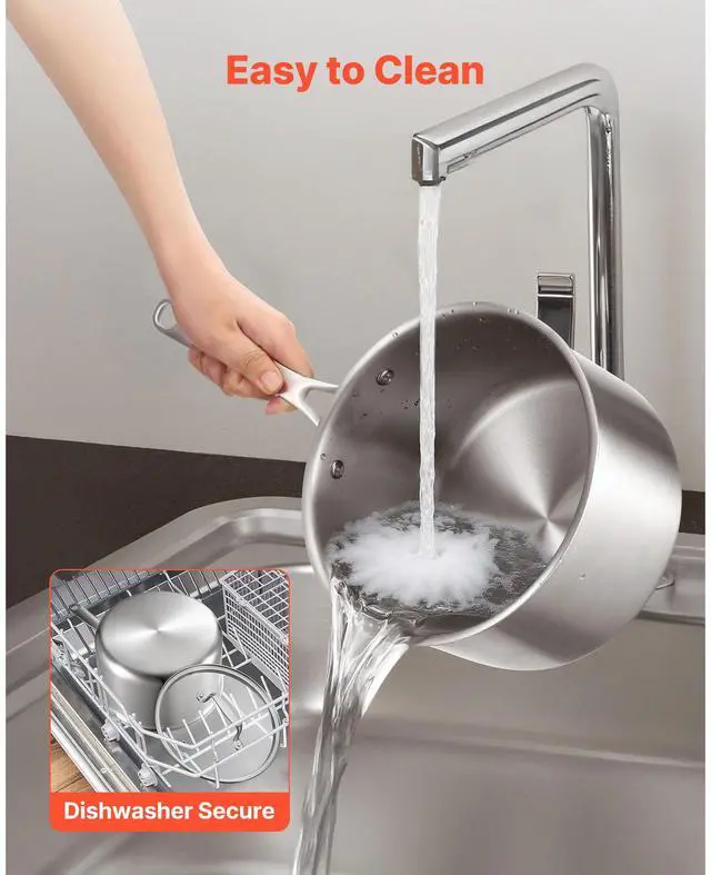VEVOR 4 QT Saucepan Stainless Steel Saucepan with Glass Lid & Ergonomic Handle