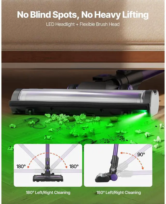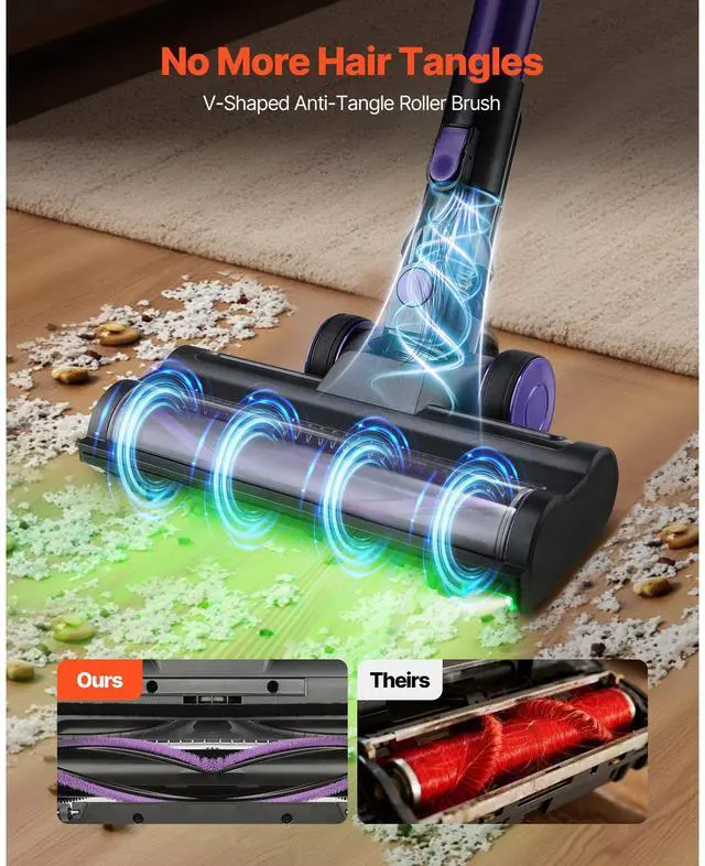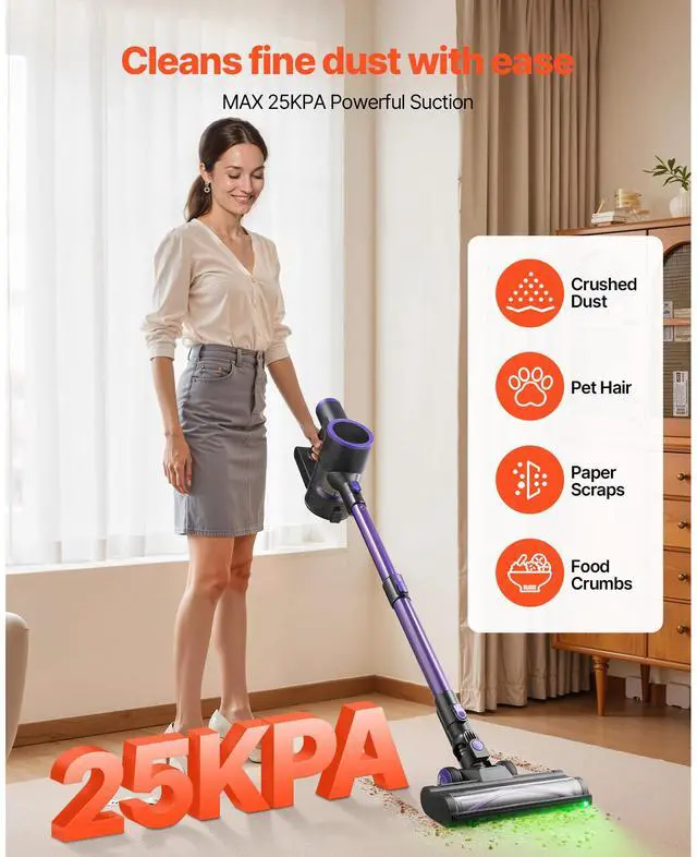 VEVOR Cordless Vacuum Cleaner 25KPA Max Suction for Animal Hair Carpet Hardwood