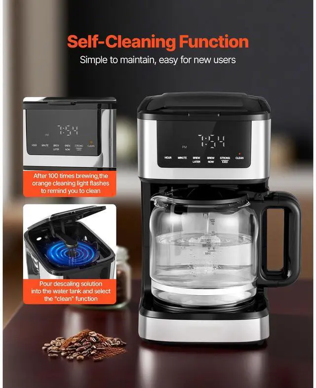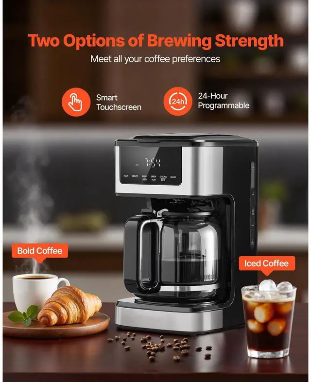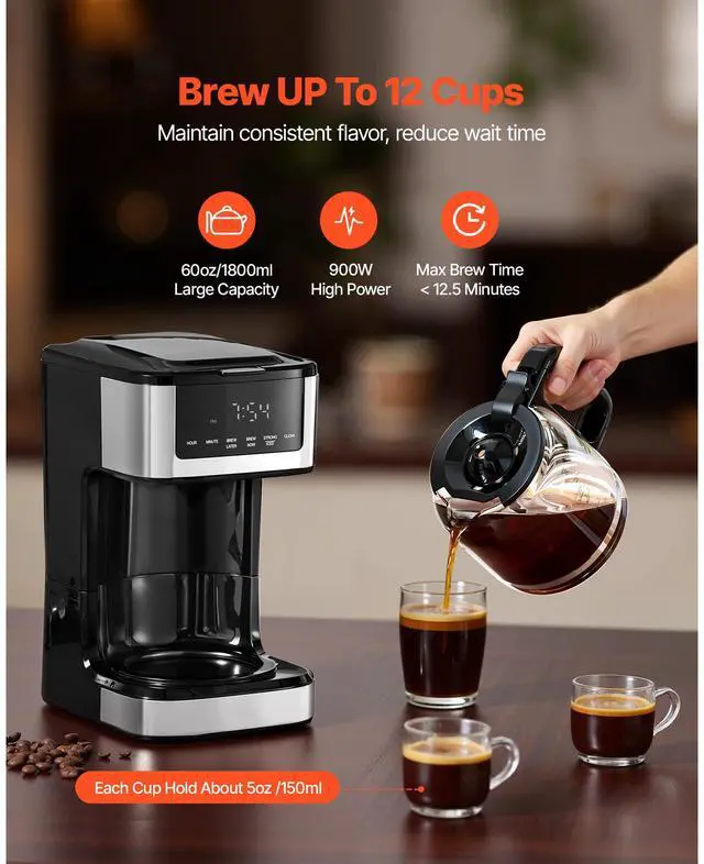 VEVOR Programmable Coffee Maker 12 Cup Programmable Drip Coffee Maker for Home