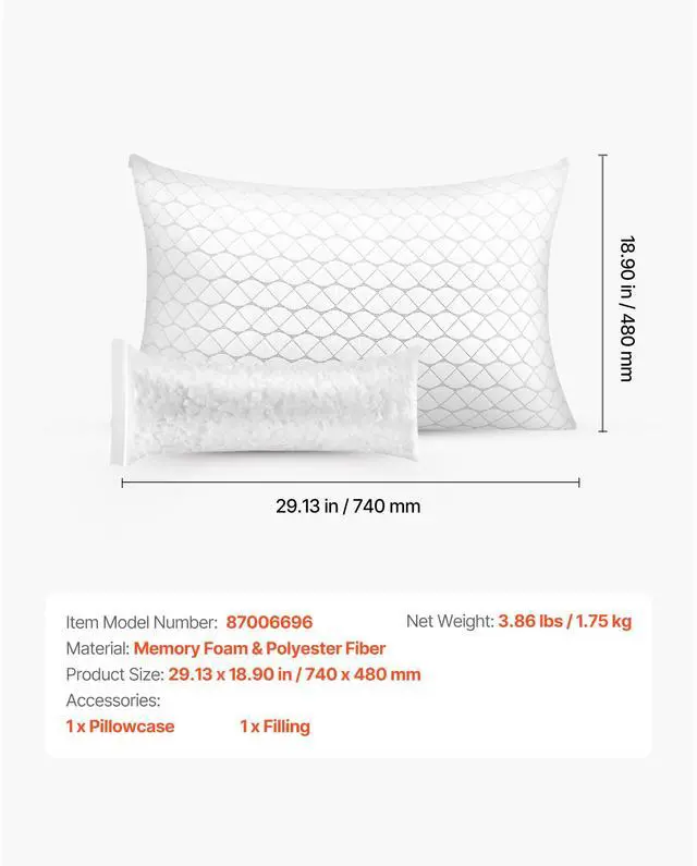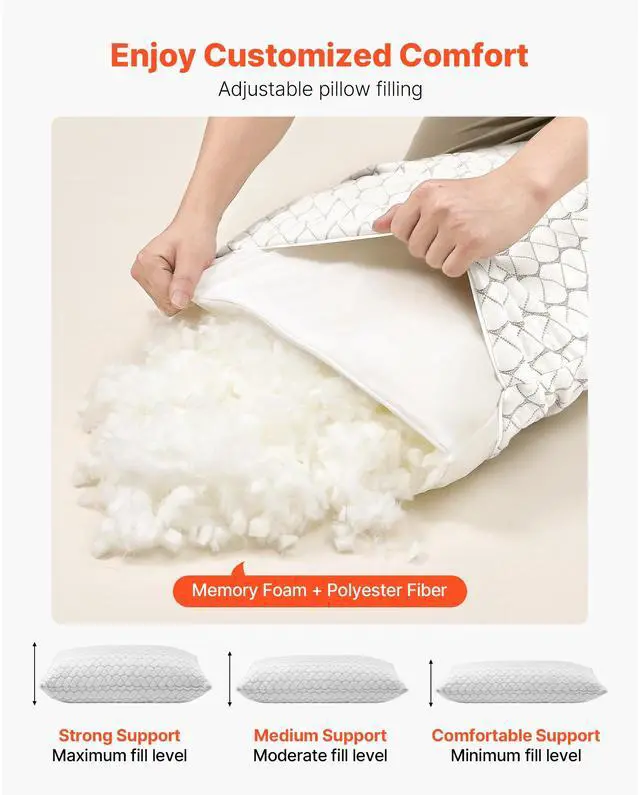 • VEVOR Bed Pillow Queen Size Luxury Quality Hotel Pillow with Memory Foam Fill