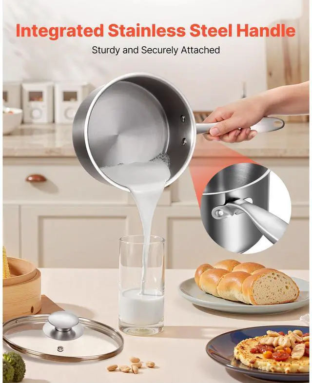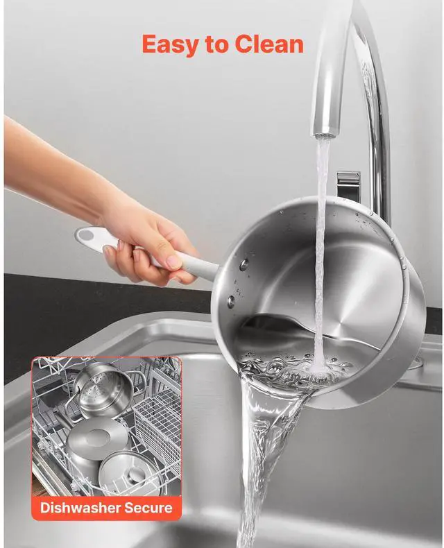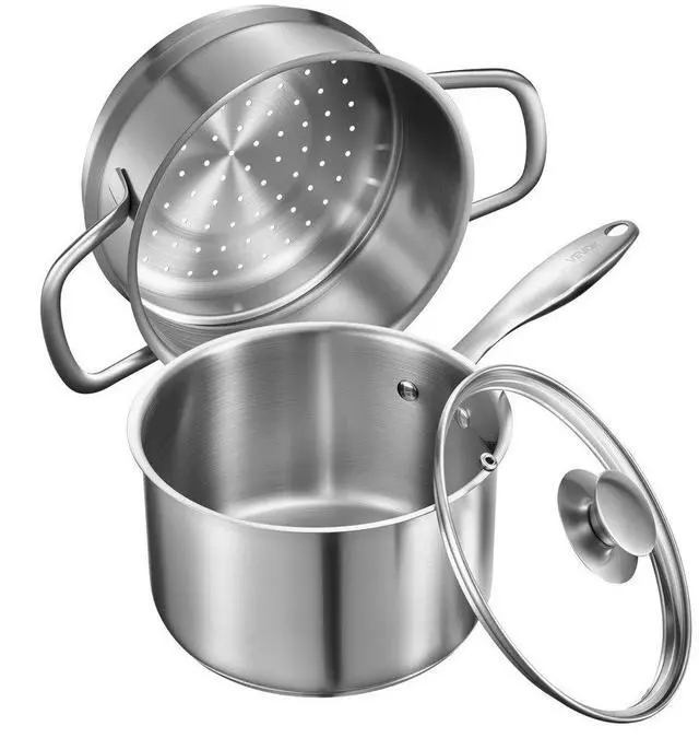 VEVOR 2.5 QT Saucepan with Steamer Stainless Steel Saucepan with Glass Lid