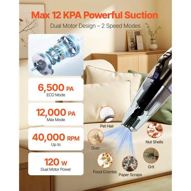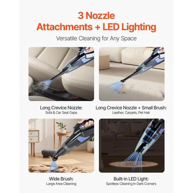VEVOR Handheld Vacuum Portable Vacuum Cleaner Cordless with HEPA Filter & Brush