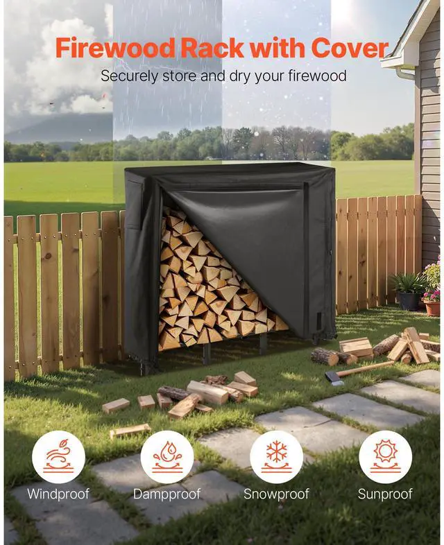 VEVOR 4 ft Outdoor Firewood Rack with Cover 1/4 Cord Storage Metal Log Holder